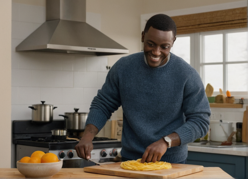 Francis was already at the stove, the rhythmic sound of a knife hitting the cutting board filling the kitchen.