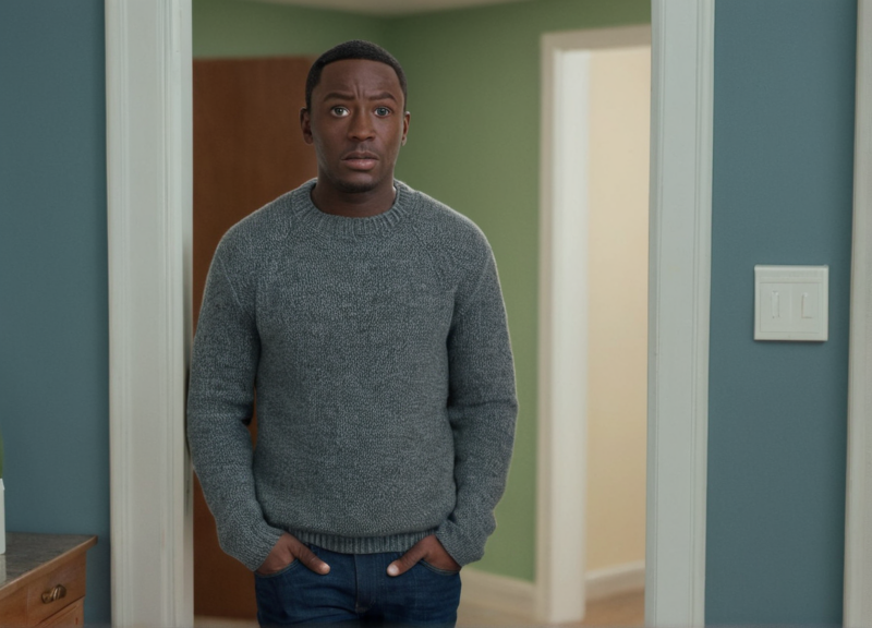 He stepped fully into the room, confusion etched across his face as he looked around for anyone else.