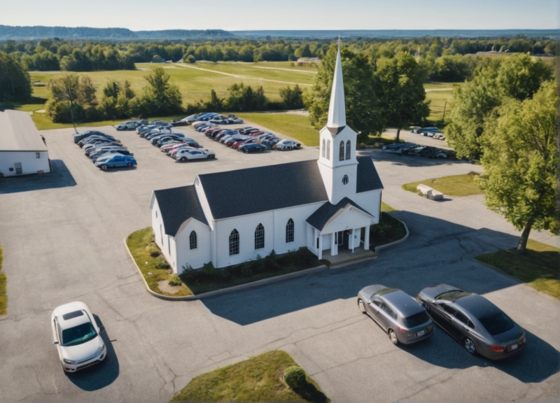 Arriving at the church lot