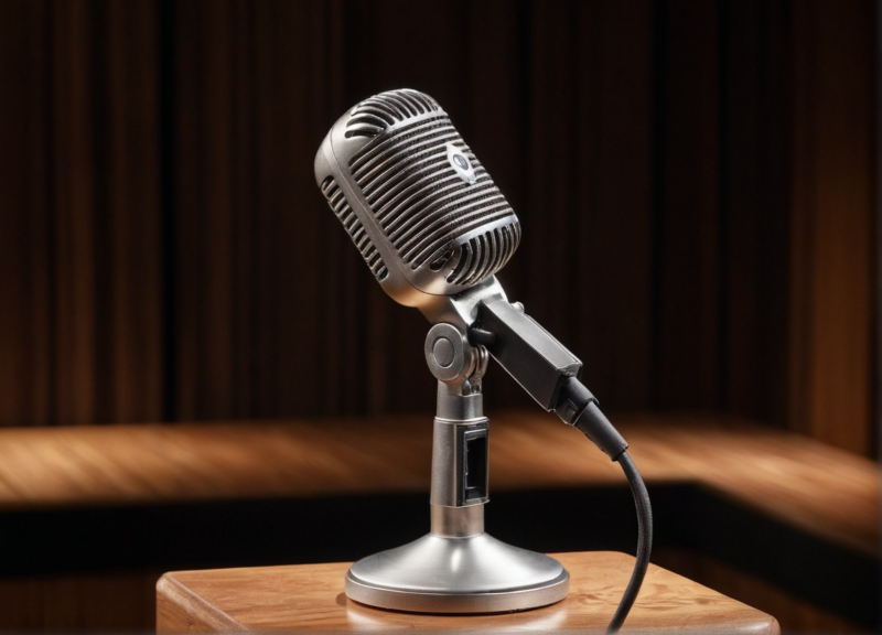 Feedback whined briefly as he leaned too close to the microphone. He flinched at the noise before clearing his throat, the sound booming through the speakers.