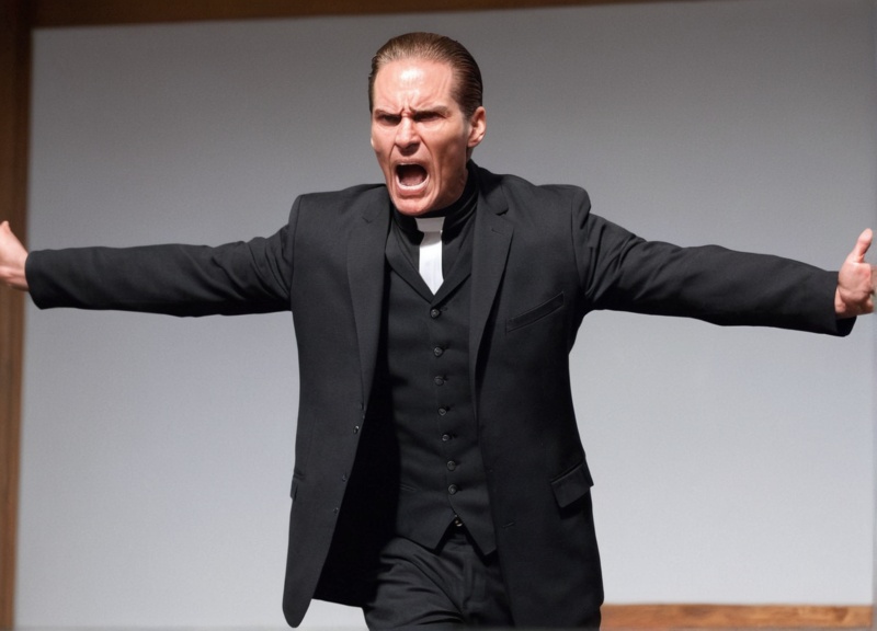 He attempted to physically drag him away from the podium and the microphone. His face was red with fury, abandoning all pretense of holiness.